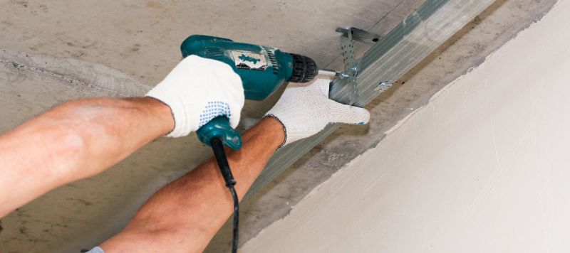 Для начала требуется приобрести материалы с учетом выбранной технологии: металлопрофили, вибродемпфирующую ленту для их обработки, подвесы, звукопоглотитель и звукоизолятор, гипсокартон. Для нанесения разметки профильной системы нужны лазерный и строительный уровень. А для раскройки и монтажа материалов понадобятся рулетка, перфоратор, шуруповерт, ножовка по гипсокартону и ножницы по металлу для резки профиля.